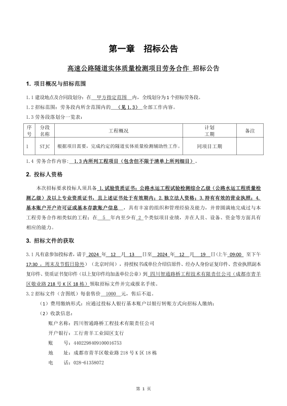 高速公路隧道實(shí)體質(zhì)量檢測(cè)項(xiàng)目 勞務(wù)合作招標(biāo)公告